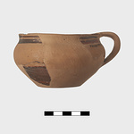 | Description: | Bottom, and the one vertical handle, broken away; restored in plaster. Glazed to the handle zone, which is reserved. Horizontal bands on rim; handle panel set off by vertical bands. | |