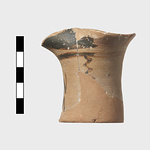 | Description: | Part of neck and trefoil mouth; filled out with plaster. Horizontal band above and below neck; rim glazed. On front of neck four-legged frog-like animal; vertical zigzags to sides. Pinkish-buff clay, slipped. Cf. Kerameikos, two unpublished pyxis covers with plastic frogs squatting on each side of horse handle. | |