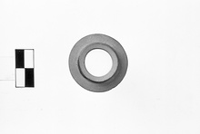| Description: | Small ring of clay with straight edge below, flaring rim above. Pot stand? Micaceous pink clay, unglazed. | |