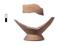| Description: | Rather less of walls preserved than in P 8480 (Ι 897). A non-joining fragment from shoulder shows that this was fairly sharp. Shape and fabric similar to P 8480. Cf. Agora V, p. 15, under no. F 50, pl. 2. ADDENDA P 8480: Thin fabric. Fine pink clay, polished outside; inside water-proofed in orange-red. | |