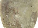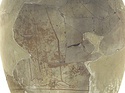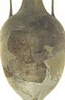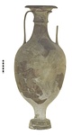 | Description: | Fragmentary; the base is missing and most of the shoulder. Traces of a missing handle. Restored in plaster. On the neck, palmettes above a ridge; vertical lines below. A: Athena moving right, wearing a peplos with broad central fold and tail behind. Behind her a post, with traces of letters; in front of her, a column crowned by a Ionic capital, inscribed <graphic>. She carries an uncertain object. B: Apollo, moving right, wearing a long chiton, and playing a cithara. Red clay, covered with two layers of white slip, and decorated in red matte paint. | |