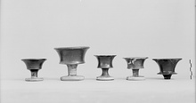 ADDENDA P 8807: Flat circular base. Flat-bottomed bowl on stem with concave flaring side wall.