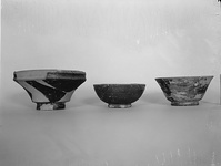 | Description: | Chips from rim missing; restored in plaster. Ring foot; flaring walls; slightly outcurving lip. Graffito on bottom: ME Pale yellow clay. Red glaze, somewhat worn. Shape similar to P 8914 (Χ 63), but rim less flaring. Pergamene Ware. | |