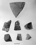 | Description: | Broken all around. The back of the helmeted head, and part of the shoulder of a figure to right carrying spear. Late black figure technique. Incision on helmet. Hellenistic. | |