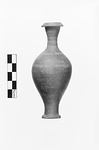 | Description: | Fusiform; plump body; well modelled lip and foot. Two white bands on body, one on neck. Red clay; dull reddish-brown surface. | |