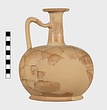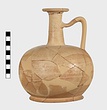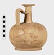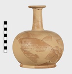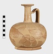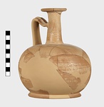 | Description: | Floor, most of handle and many pieces missing. Base ring; globular body; widely flaring lip with flat surface on top; double-grooved strap handle. Thin pinkish-buff clay. Light yellow slip, very smooth. ADDENDA Additional fragments found in going through sherds; restored in plaster. Cf. Related shape, red glaze relief jug P 10714. | |