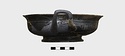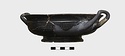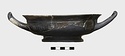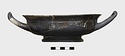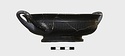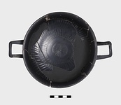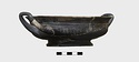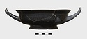 | Description: | Part of foot, fragments of walls and both handles missing. Restored in plaster. Moulded ring foot, lightly moulded inside, with narrow reserved circles and central space ornamented with circles and dot; side walls ribbed to flaring rim. On floor rosette; plain band; tongues. Fine fabric. Good black glaze. | |
