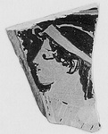 | Description: | Fragment from shoulder of closed pot, broken all around. Bit of border line at top. Girl's head to left; headband; chiton and himation. No relief contour. Careless work. Drawing-glaze in part peeled. Cf. Hesperia 93 (2024), p. 215 (noted). | |