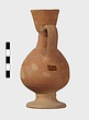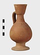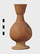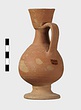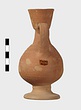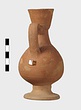 | Description: | Intact. Plump pear-shaped body on high stem with broad flat base; narrow neck; bell-shaped mouth; handle from junction of mouth and neck to shoulder. Incised decoration on shoulder. Buff clay. Very thin pale orange glaze not reaching to the bottom. | |