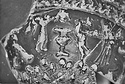 Description:   Much of wall and rim missing. Restored in plaster. On bottom, rosette; then imbricated leaves; above, Nikes and Erotes flying over kraters; then guilloche.