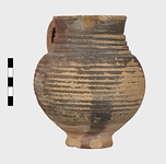 | Description: | Intact save for chips. Shape as P 9893 (Φ 295), but body ribbed. Dark red glaze on exterior, except toward base, and on most of interior. | |