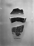 Description:   Wall fragment from a large krater; dull black glaze on inside, banded on outside. Part of a handle attachment preserved.