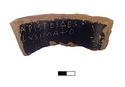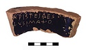 | Description: | Rim fragment from an amphora. Black glazed inside and out, reserved on top. Writing on inside: <graphic> | |