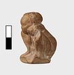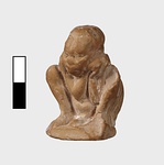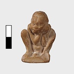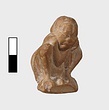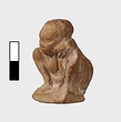 | Description: | Complete save for the right knee and foot. A tiny figure with negroid features sleeps hunched up; his shoulders thrust down between the knees, his clasped hands again the left cheek. The exaggerated membrum virile is stretched out on the low plinth between the feet. Clay: Buff, fine. Traces of red pain on the flesh. Completely modeled behind. | |