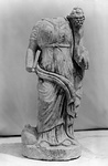 | Description: | Head, right hand and the attribute it held missing. Standing female figure, about one-third of life size, on an irregular oval plinth, dressed in short-sleeved chiton with high waist and himation. She stands with her weight on her left leg and holds a cornucopia with grapes and other fruit in her left arm; in her right hand a steering-oar, missing except for a bit of the blade which is attached to the globe at her right foot. The chiton is modeled closely over the breasts and upper body, and a large fold of the heavier himation swings diagonally across below her waist from the right and falls to her feet at the left. Capable work. Pentelic marble. | |