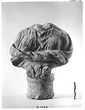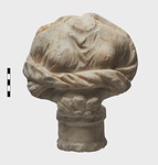 Draped female bust on small circular base, the bust rising in front from three formalized leaves.