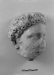 | Description: | Probably from a relief, as flat break at back suggests. Break at right through middle of left eye; chin missing; nose rubbed off; curls chipped in a few places. Head of a youth in half profile to right; double row of snail curls across forehead, wavy locks behind. Carefully finished. Pentelic marble. | |