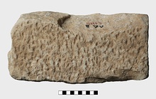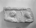 | Description: | Part of top preserved; otherwise broken. The heads and shoulders of two figures are preserved, and between them is a narrow object, a torch (?). The left-hand figure wears a veil over her head and appears to be holding an elongated object in her raised right hand. Ovolo and taenia above. Pentelic marble. | |