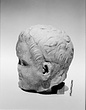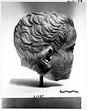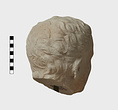| Description: | Nose, mouth and chin badly battered; eyes and ears somewhat chipped. Broken at top of neck. Head of a child or a youth, life-size. Pentelic marble. Drilled for setting on base June 1950. | |