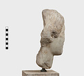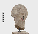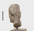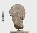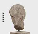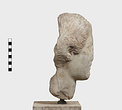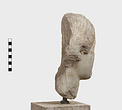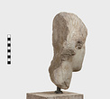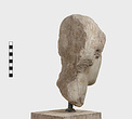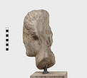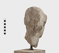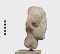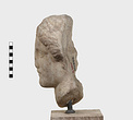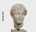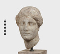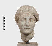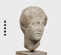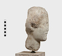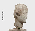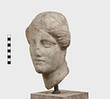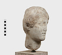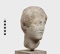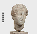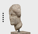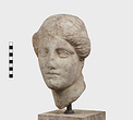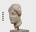 | Description: | About life-size. Broken at the base of the neck, and the back broken off. The nose and chin battered. Woman's head bent sharply to the left; the hair is rolled back from the face and wrapped in a kerchief. From a grave stele with figures in high relief. Pentelic marble. | |