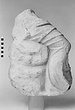 Almost completely modeled in the round, except for small piece in upper back, which was finished with a joint surface and intended to be set against something. The scale would suit the pediment of the Temple of Apollo Patroos.