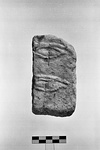 | Description: | Broken at left; smooth back; rough edges at top, bottom and right probably original. Two eyes in low relief set above the other. White crystalline marble. | |