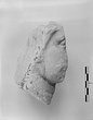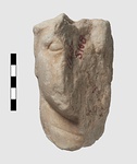 | Description: | A small head, the left side has been sliced away, and the right side and top are broken; neck broken off at base. Only the right cheek and eye, and part of the neck, front and back, remain. Very little modeling, surface was finished smooth, now much damaged. Pentelic marble. | |