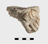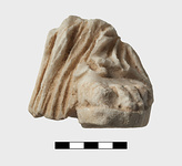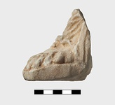 | Description: | Left foot on sandal; sole projecting from crinkly chiton hem. Under side of sole roughly finished and drapery undercut with chisel. Much weathered. Cf. Altar of Ares series. Pentelic marble. | |