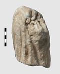 Left hand, life-size or only a little under, raised and enveloped in drapery from which the ends of three fingers emerge. Delicate folds of the edge of the garment fall below them.
