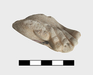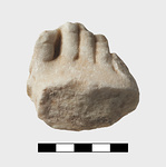 | Description: | Broken off just behind toes. Ends of big and second toes broken off, little toe chipped. From a bare right foot, finished underneath. Seems to have touched ground, if at all, only with big toe. Marks of drill along inside edge of foot. Pentelic marble. Cf. Altar of Ares series. | |