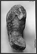 | Description: | Split off from background roughly on the plane of contact. Head, both arms and both legs broken off. Front of torso and breaks except those of back much weathered. Nude male torso in more or less frontal position with both arms raised, legs apart, back arched so that small of back is cut free of background. Shape and size of breaks on back and position of drill-channels indicate that this is the torso of Theseus from the Sinis metope, S II. Parian marble. Replaced on Hephaisteion's south metope II, 15 July 1954. | |