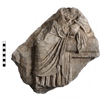 | Description: | Rough-picked back preserved. Otherwise broken all around. Preserves part from waist to hem of a female figure in chiton and himation seated facing left in a cushioned chair. Competent chisel work. Drill channels in lower folds of chiton. Pentelic marble. | |