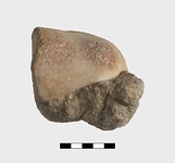 | Description: | Fragment of left leg broken off above and below knee. The knee appears to be bent at a right angle, and is deeply hollowed underneath. Something , which is broken off (the right knee?), crosses the top of the knee near the inside. Remaining surface of this has a smooth finish, like flesh. Very smooth finish. Ancient (?) weathering on upper, proper side. Marble-pile weathering all over. Mortar as S 1873 (Β 2144). Island marble. | |