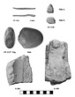 On one side the background has been picked away to depth of about 0.006m. around the outline of a head in profile, which is short-haired and beardless, the features only slightly worked out; top of shoulder included, cut off in straight line below. Position of eye marked by a shallow chipping; interior surface otherwise level and covered uniformly with tooth chisel marks.