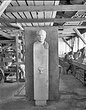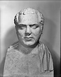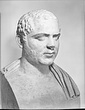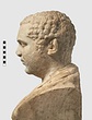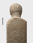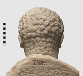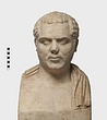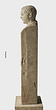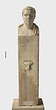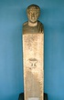 Life-sized herm with portrait head of a man with short curly hair and himation falling over left shoulder.