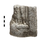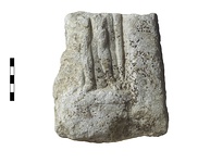 | Description: | Only lower right corner remains. Thighs and legs of a frontal standing figure. Beside the left leg a vertical mass of drapery. Rough work. Coarse-grained island marble, perhaps Naxian. | |