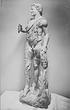 | Description: | Mended from over 73 fragments; apparently deliberately destroyed. Missing is body of goat and fragments from back of neck and back of right hand of faun. The faun, smiling, is holding panpipes in his right hand; left hand is grasping horn of goat crouching at side. He has pointed ears, short horns and short curly tail and is dressed in a goatskin. His upper teeth show, and the dimples and wrinkles on his face are clearly indicated. The marble has rusted in places to a deep ruddy color; nude parts highly polished; goatskin worked with toothed chisel, traces of red paint; goat roughly worked; back of figure worked with toothed chisel. The back of the head was apparently broken off in antiquity and mended by a dowel strengthened with cement; when found, the join had worked loose; as shown on photograph taken before mending. Pentelic marble. Fingers of right hand and pipes stolen 14 May 1964. | |