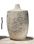| Description: | Mouth and foot missing. In relief three figures. Seated woman with standing woman beside her shakes hands with standing man. White marble. | |