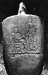 | Description: | Neck and handle(s) broken off half way up. Foot broken off. In relief, two figures. Seated woman shakes hands with standing man. White marble. | |