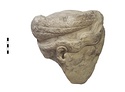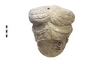 Description:   Full head preserved, broken below chin and lower back. Face battered; nose, mouth and chin area much damaged.