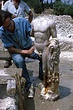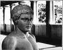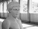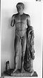| Description: | Complete except for left hand, right forearm and hand, upper part of club and chips from feet, genitals and nose. Statue of very youthful Herakles. Weight on left leg, right leg forward, and slightly bent; left arm bent at elbow with lion skin draped over forearm and tree trunk support, right arm away from body, hand resting on club. Head turned somewhat to the right, hair bound with thin fillet. Somewhat rough behind. White and blue-gray marble, the white veins apparently harder to carve. | |