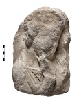 Head to mid-chest preserved of seated female figure facing right with right hand to chin.
