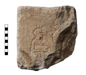 | Description: | Low, incised relief: left edge worked smooth and parts of two figures preserved. Head top to mid hip preserved of standing maid in peplos holding large jewelry box. She is in profile to right and stands behind woman seated on klismos. Back of head and of chair of woman remain. Back of relief battered and worn. Pentelic marble. | |