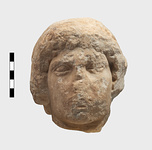 | Description: | Small head, broken off at the back just below the chin; the surface badly damaged, nose, mouth and chin presenting scarcely any worked surfaces. The head is that of a youth, bent slightly to his left; the hair apparently bound by a fillet, though the surface is much worn. The hair, which extends in a heavy mass down the back of the neck, is divided at the left side, exposing the carefully worked ear. Round the face were small curls, in back the hair appears to have been only roughly blocked out. Pentelic marble. Drilled for setting on base January 1954. | |