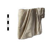 | Description: | Broken above, through hips, and below, above ankles. Figure, perhaps Asklepios, standing with weight on left leg, dressed in thick himation with simple folds. Marble. Cf. Martens (2015), p. 61, n. 7. | |