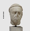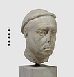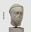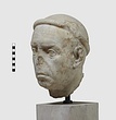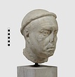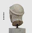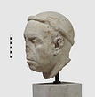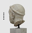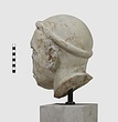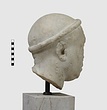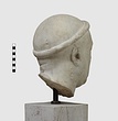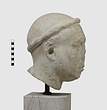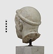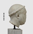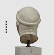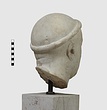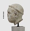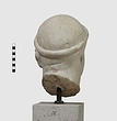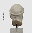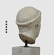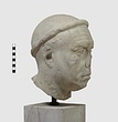 Description:   Head of an unknown, middle aged man in a skullcap. The head is broken off at the base of the neck; most of the right ear, the end of the nose and the tip of the left ear are missing. Chips gone from the roll at the right side of the head and from the chin.