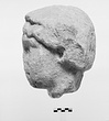 | Description: | Surface abraded and encrusted with mortar on right side of head. Broken at neck; nose, hair on right temple, and hair at back of head on left broken off. Face characterized by deep-set eyes and prominent brow ridge. Head tilts to right. Hairstyle consists of a row of ringlets across the forehead under a smooth mass of hair bound into a roll on the back of the neck and articulated with braids incised on the surface. Medium to fine grained white marble. | |