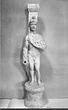 | Description: | The figure is nearly intact except for some object in the right hand. Mended from three pieces. A standing male figure clad in himation and Phrygian cap and carrying pine cones and fruit. The man is nude save for the cloak, slung over his left shoulder and falling down his back. He holds the offerings in the crook of his left arm, in the fold of his garment. A hole pierced in the lowered right hand indicates the former presence of some object, possibly a staff, in that hand. The figure stands on an approximately circular base with tori above and below. At the back, a square pillar ending in a rectangular capital. Clear traces of red on the cloak. The surface of the flesh is polished. Pentelic marble. | |