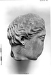| Description: | Small head, from the Altar of Ares series (?), only the right half is preserved, broken away below the chin. Nose and chin damaged. The woman's hair was drawn up in waves and fastened above the crown of her head (see B 30). Her ear is pierced for an earring. Excellent work. Pentelic marble. | |