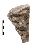 | Description: | The bottom broken off, the back shapeless, the top scooped out. Broken on either side. Unfinished. On the front, the roughly hacked figure of a nude boy with left arm raised (gone from the elbow down). His head is turned slightly to the right. Soft, greenish yellow poros. | |